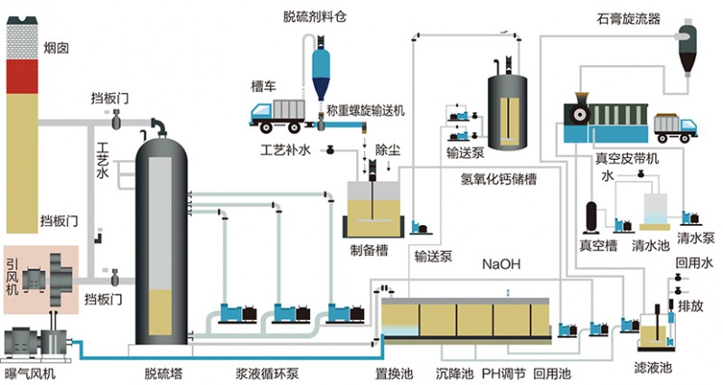雙堿法脫硫工藝,簡稱雙堿法,是常用的煙氣脫硫法。